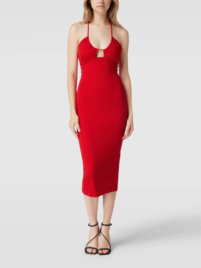 Das Midikleid von Bardot ist aus einem elastischen Material-Mix gefertigt und eng anliegend geschnitten. Es zeigt sich mit V-Ausschnitt und Neckholder zum Binden.