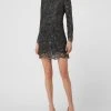 Das Minikleid von Bardot ist aus einem Material-Mix mit Baumwoll-Anteil gefertigt und tailliert geschnitten. Es zeigt sich mit floralen Lochstickereien und Herz-Ausschnitt.