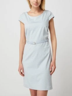 Das Etuikleid von BETTY & CO. ist aus einem Baumwoll-Elasthan-Mix gefertigt. Es zeigt sich in taillierter Passform mit Rundhalsausschnitt, Kappärmeln und schmalem Gürtel.