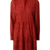 Das Kleid von BETTY & CO. ist aus Chiffon gefertigt und tailliert geschnitten. Es kommt mit Allover-Muster, Schnürung und Volantsaum.