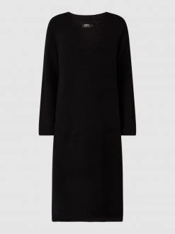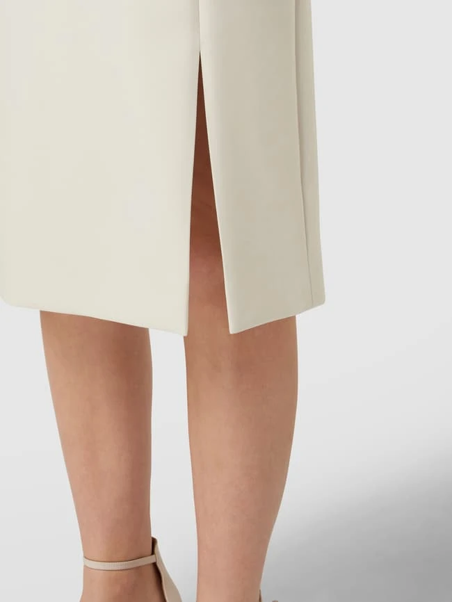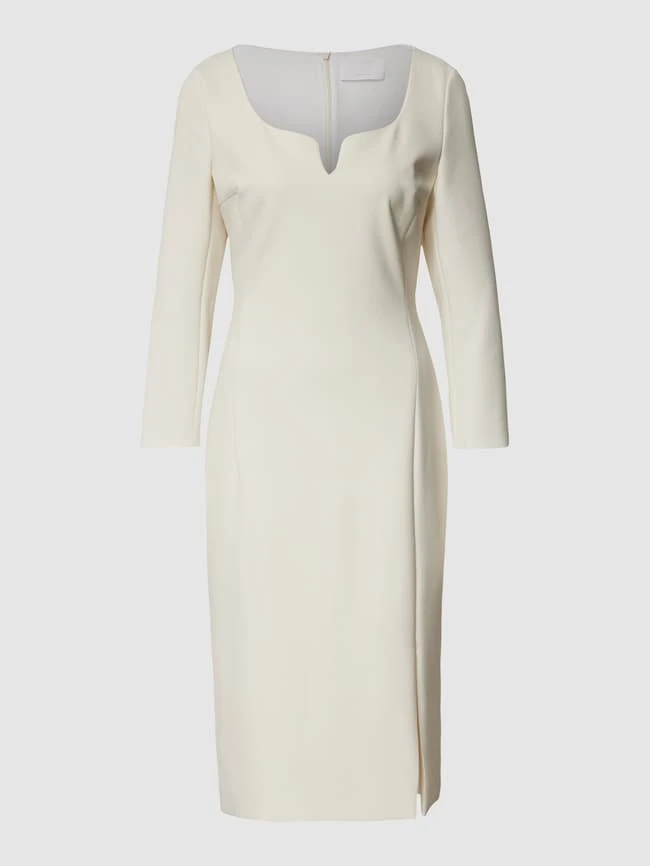 Das Midikleid von BOSS ist aus strapazierfähigem Material gefertigt und gerade geschnitten. Es zeigt sich mit langen Ärmeln, tiefem Rundhalsausschnitt und Schlitz auf der Vorderseite.