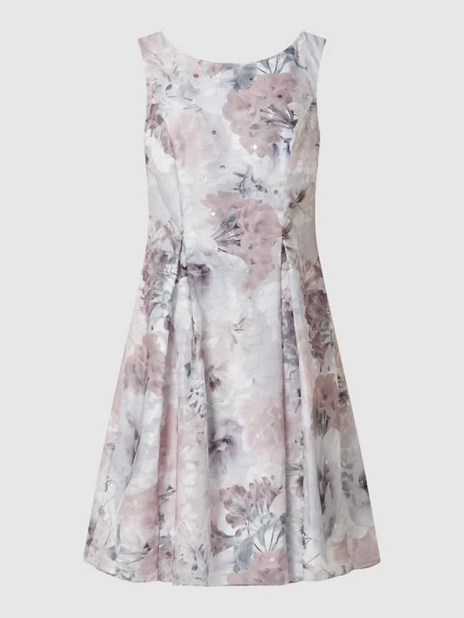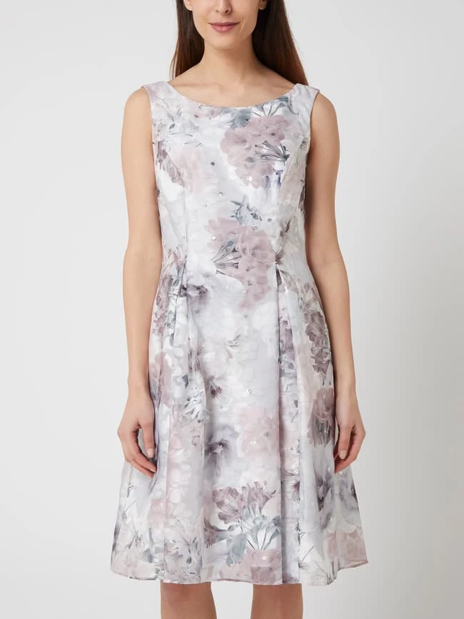 Das Cocktailkleid von Christian Berg Cocktail ist aus Brokat gefertigt. Es zeigt sich in taillierter Passform mit floralem Muster, Effektgarn und Kellerfalten.