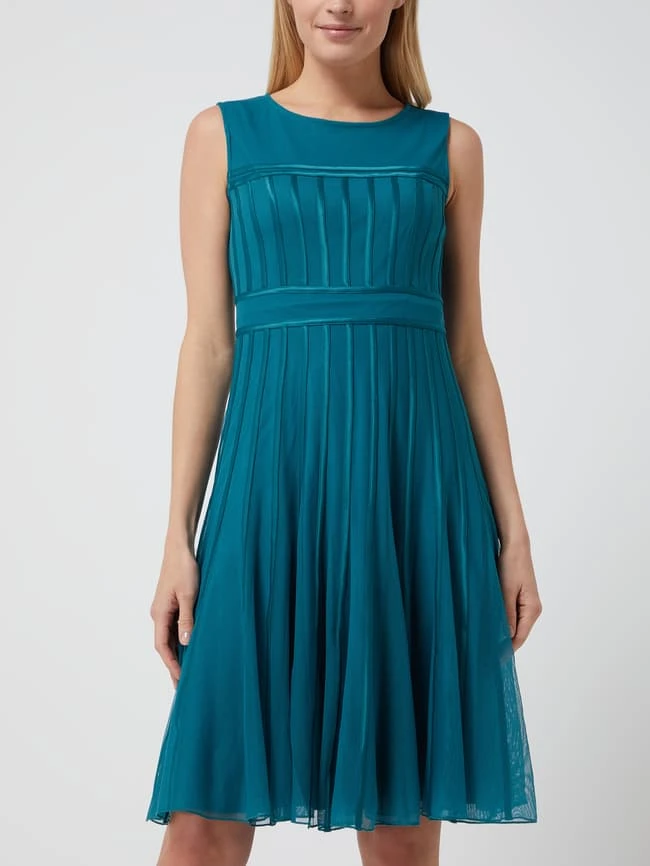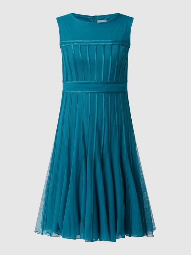 Das Cocktailkleid von Christian Berg Cocktail ist aus Tüll gefertigt und tailliert geschnitten. Es zeigt sich mit Zierstreifen, ausgestelltem Rockteil und Nahtreißverschluss auf der Rückseite.