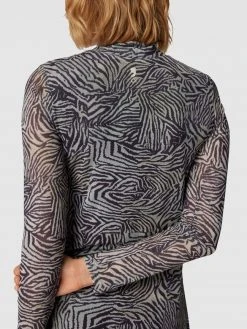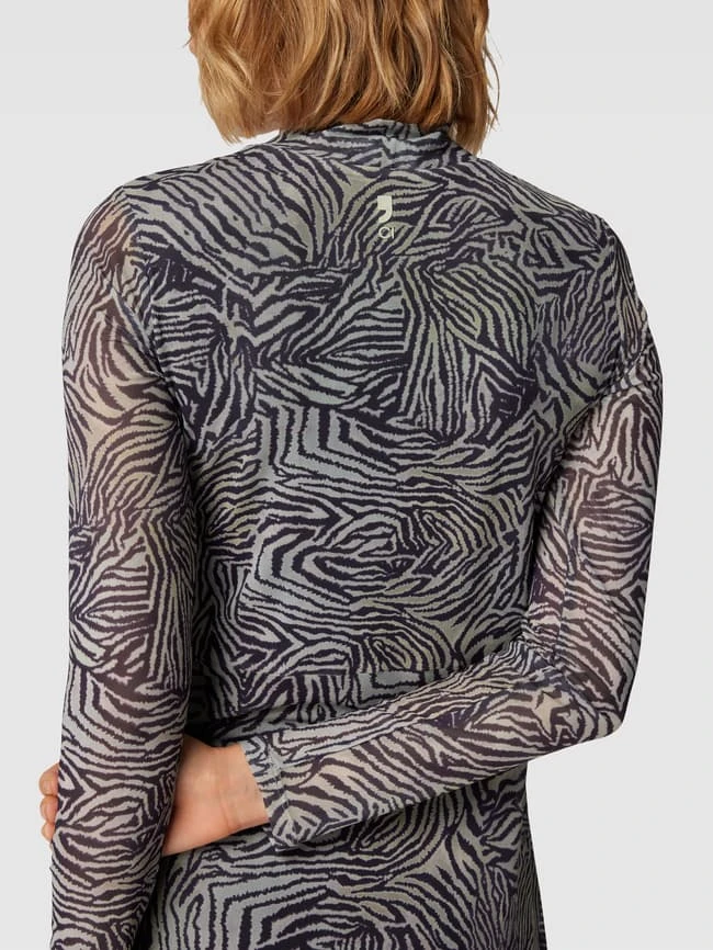 Das Midikleid von comma ist aus einem strapazierfähigen Material gefertigt und im taillierten Schnitt gehalten. Es zeigt sich mit Allover-Muster, Stehkragen sowie Label-Print.