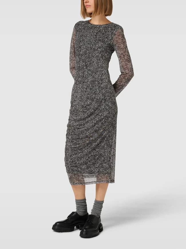 Das Midikleid von comma ist aus einem elastischen Material-Mix gefertigt und körpernah geschnitten. Es zeigt sich in semitransparentem Design mit floralem Allover-Muster.