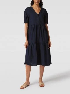 Comma Midikleid Mit V-Ausschnitt – Dunkelblau