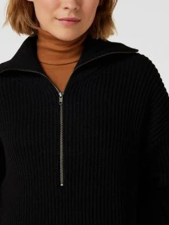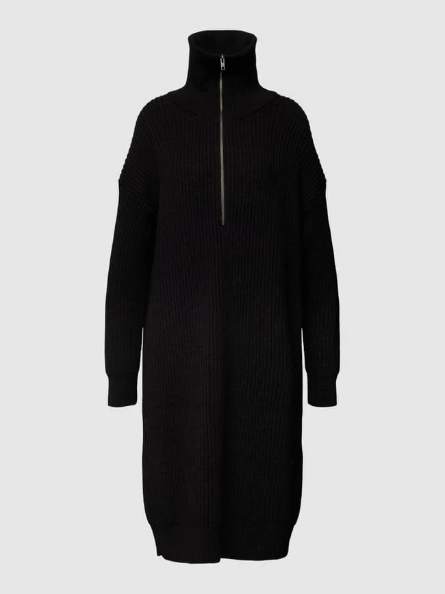 Das Midikleid von DRYKORN ist aus einem Material-Mix mit Woll-Anteil gefertigt und gerade geschnitten. Es zeigt sich in Strick-Optik mit kurzem Reißverschluss und Stehkragen.