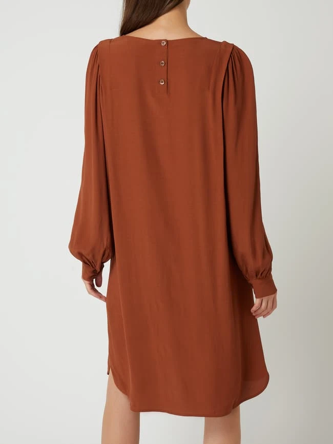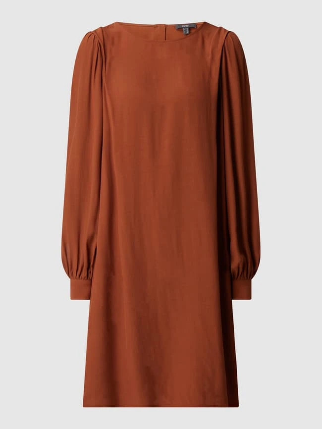 Das Kleid von Esprit Collection ist aus reiner Viskose gefertigt und ausgestellt geschnitten. Es kommt mit Rundhalsausschnitt, Ballonärmeln und gelegten Falten.