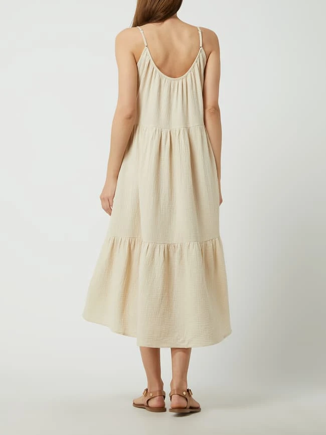 Das Kleid von Jake*s Casual ist aus reiner Baumwolle gefertigt und ausgestellt geschnitten. Es kommt im Stufen-Look mit Rundhalsausschnitt, verstellbaren Trägern und Eingrifftaschen.