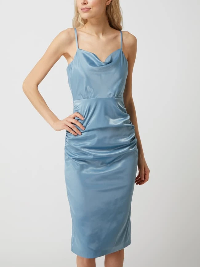 Das Cocktailkleid von Jake*s Cocktail ist aus Taft gefertigt. Es zeigt sich in eng anliegender Passform mit Wasserfall-Ausschnitt, schmalen Trägern und Raffungen.