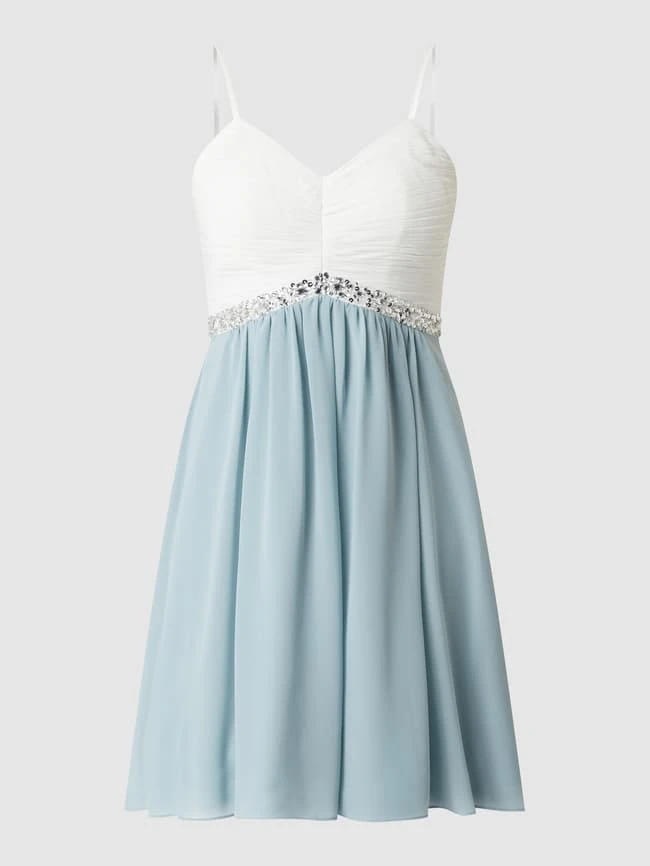 Das Two-Tone-Cocktailkleid von Jake*s Cocktail ist aus leichtem Material gefertigt und tailliert geschnitten. Es kommt mit Herz-Ausschnitt, Strasssteinen und Raffungen.
