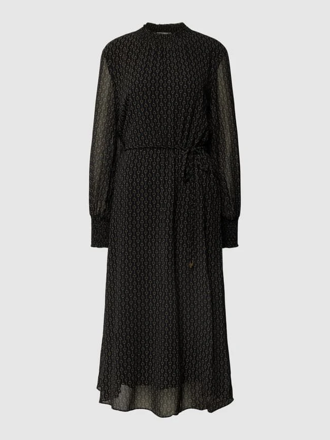 Das Kleid von Jake*s Collection ist aus einem strapazierfähigen Material-Mix gefertigt und tailliert geschnitten. Es zeigt sich mit Allover-Muster und Taillenband.