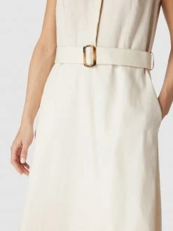 Das Midikleid von Jake*s Collection ist aus einem Baumwoll-Leinen-Viskose-Mix gefertigt und tailliert geschnitten. Es kommt im ärmellosen Design mit Blusenkragen, Taillengürtel sowie kurzer, verdeckter Knopfleiste.