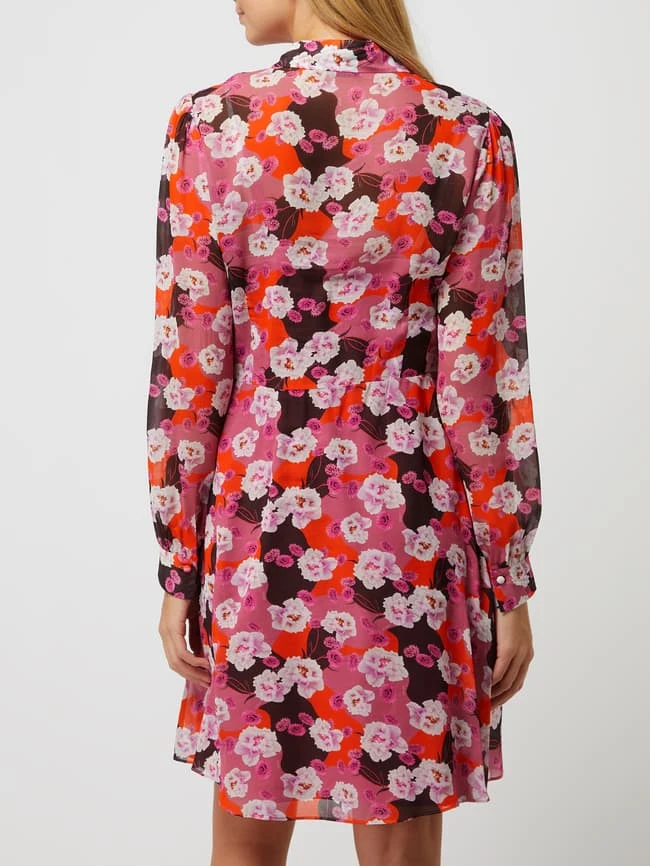Das Kleid von JOOP! ist aus reiner Viskose gefertigt und ausgestellt geschnitten. Es kommt mit floralem Muster, Umlegekragen und kurzer Knopfleiste.