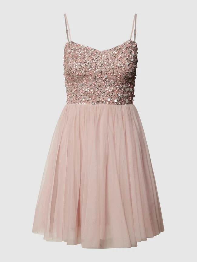 Das Cocktailkleid von Lace & Beads ist aus strapazierfähigem Material gefertigt und tailliert geschnitten. Es kommt in Minilänge, mit Paillettenbesatz, ausgestelltem Rockteil aus Tüll und weitenverstellbaren Spaghettiträgern.