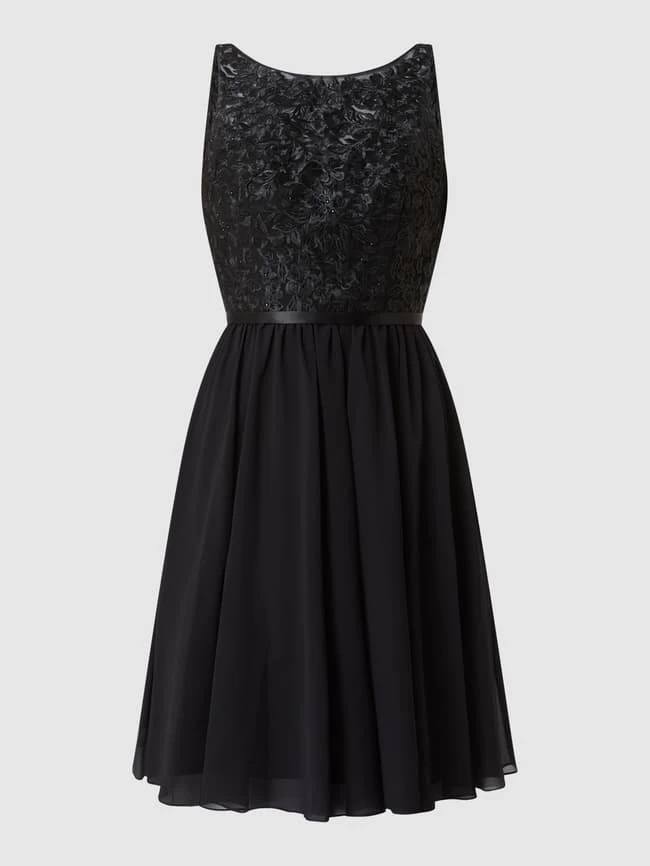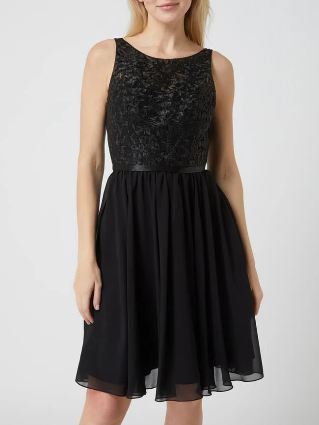 Das Cocktailkleid von LUXUAR MAGIC NIGHTS ist aus Tüll und Chiffon gefertigt. Es zeigt sich in taillierter Passform mit floralen Stickereien, Strasssteinen und tiefem Rückenausschnitt.