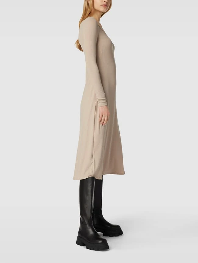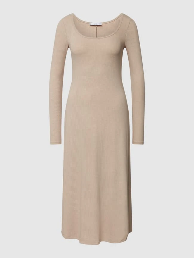 Das Midikleid von MANGO ist aus einem Material-Mix mit Viskose-Anteil gefertigt und tailliert geschnitten. Es zeigt sich in Ripp-Optik mit U-Ausschnitt.
