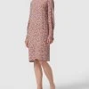 Das Strickkleid von MANGO ist aus einer Viskosemischung gefertigt und tailliert geschnitten. Es zeigt sich mit V-Ausschnitt, Knotendetail und leicht ausgestelltem Rockteil.
