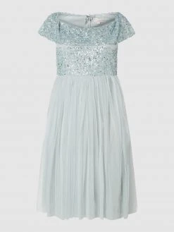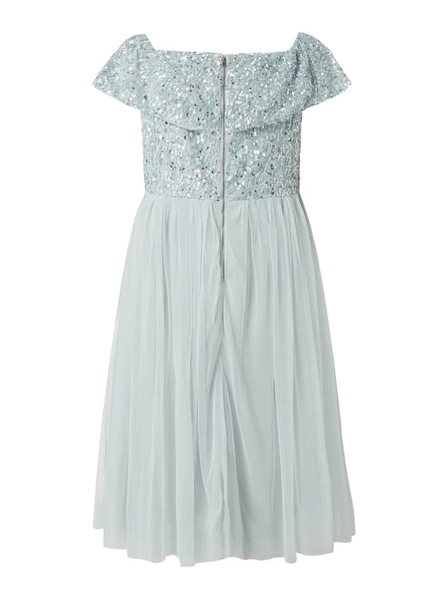Das Cocktailkleid von Maya Deluxe Curve ist aus Tüll gefertigt und tailliert geschnitten. Es zeigt sich im Off Shoulder Look mit Pailletten, ausgestelltem Rockteil und Nahtreißverschluss auf der Rückseite.