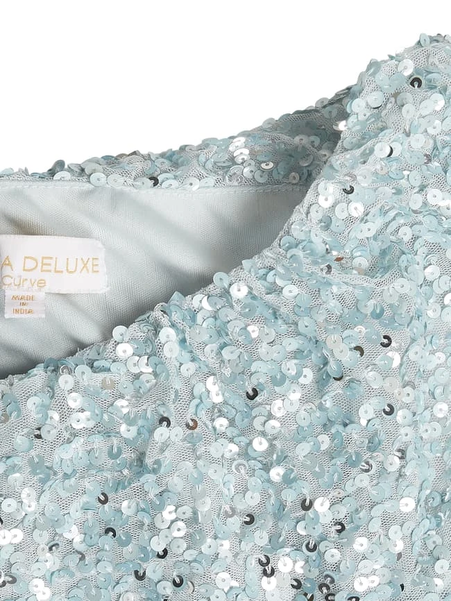 MAYA DELUXE PLUS SIZE Cocktailkleid Mit Pailletten – Hellblau