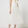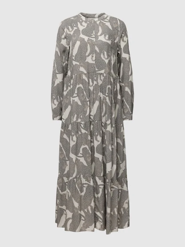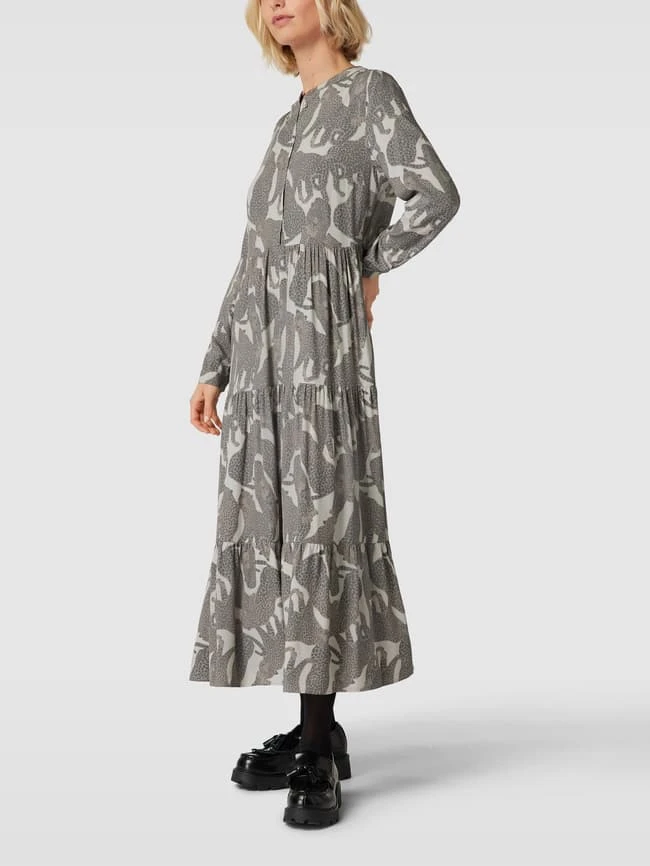 Das Maxikleid von MILANO ITALY ist aus reiner Viskose gefertigt und locker geschnitten. Es zeigt sich im Stufen-Look mit Allover-Muster und kurzer Knopfleiste.