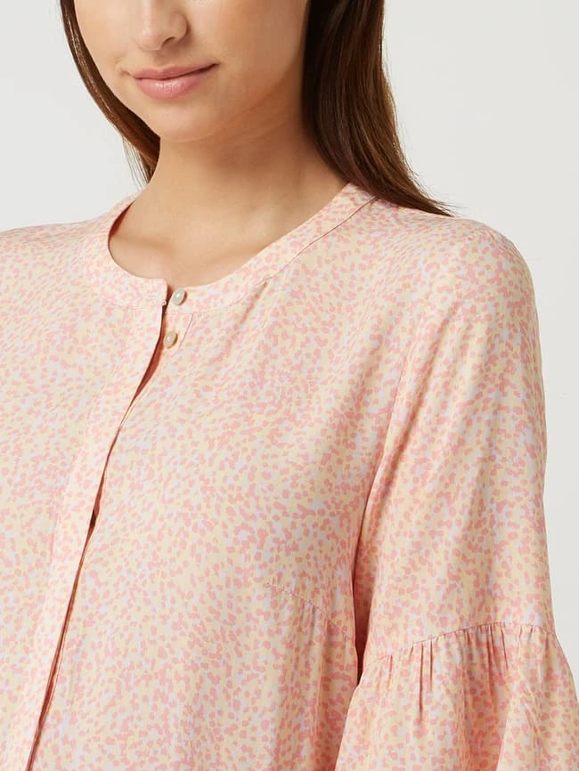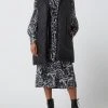 Das Midikleid von MONTEGO ist aus reiner Viskose gefertigt und ausgestellt geschnitten. Es zeigt sich im Stufen-Look mit Stehkragen, 3/4-Arm und Eingrifftaschen.
