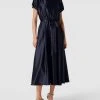 Das Midikleid von MORE & MORE ist aus reiner Viskose gefertigt und tailliert geschnitten. Es zeigt sich mit floralem Allover-Muster und durchgehender Knopfleiste.