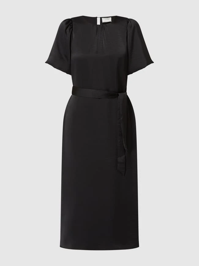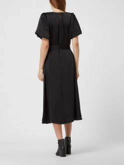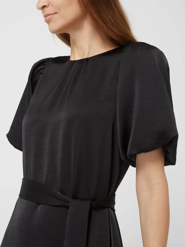 Das Kleid von Neo Noir ist aus Satin gefertigt und tailliert gefertigt. Es zeigt sich mit kurzen Ballonärmeln und Taillengürtel.