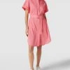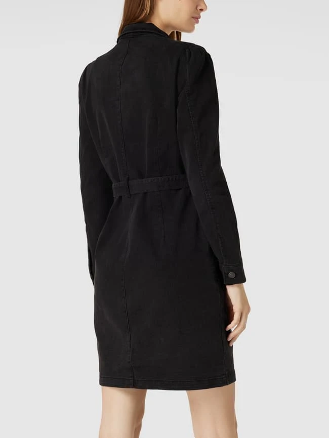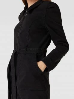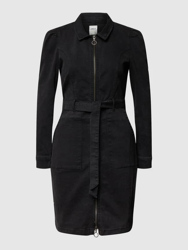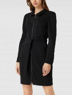 Das Kleid von ONLY ist aus einem Baumwoll-Mix mit Stretch-Anteil gefertigt und tailliert geschnitten. Es zeigt sich mit Umlegekragen, durchgehendem Zweiwege-Reißverschluss sowie Taillenband.