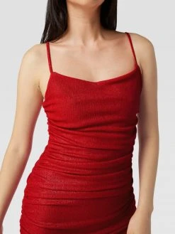 Das Cocktailkleid von Paradi ist aus einem strapazierfähigen Material mit Stretch-Anteil gefertigt und körpernah geschnitten. Es zeigt sich in schimmernder Optik mit Wasserfall-Ausschnitt und schmalen Trägern.