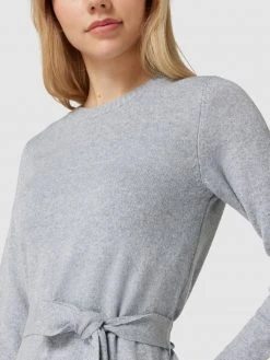 Pieces Knielanges Kleid In Strick-Optik Modell ‘Cava’ – Hellgrau Meliert