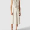 Das knielange Kleid von PIECES ist aus einem Material-Mix mit Elasthan-Anteil gefertigt und gerade geschnitten. Es zeigt sich in Strick-Optik mit geripptem Rundhalsausschnitt.