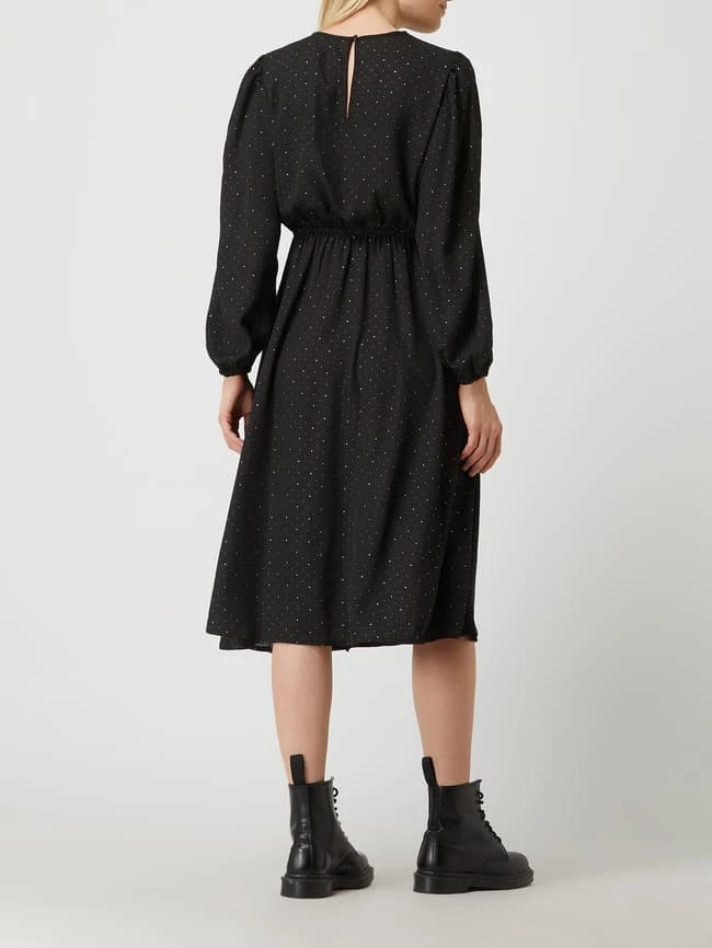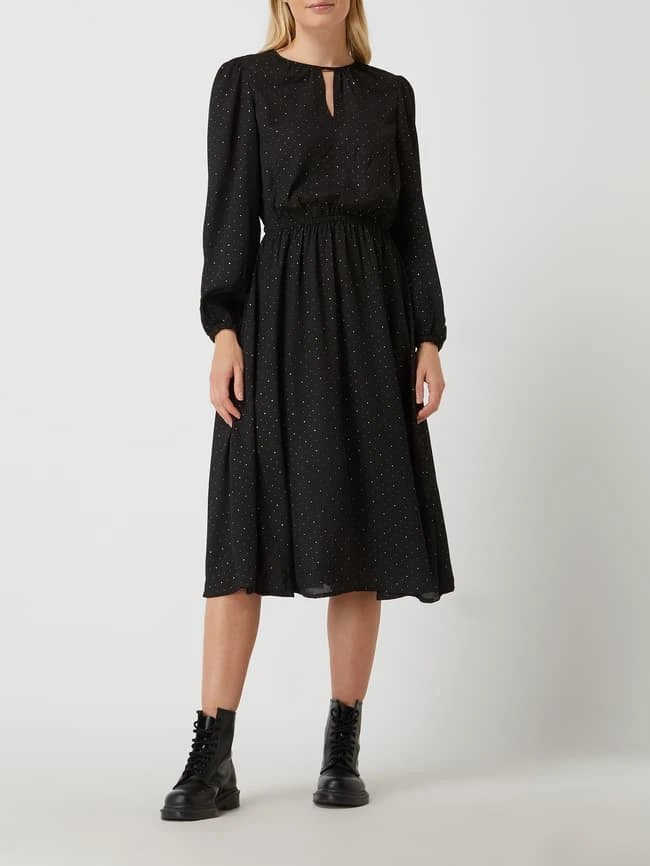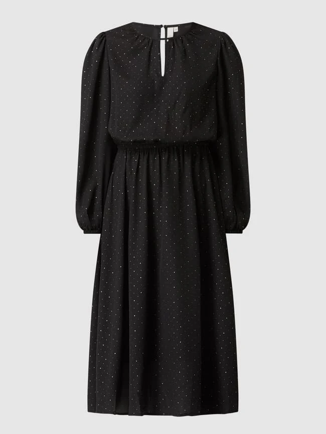 Das Midikleid von Q/S designed by ist aus Chiffon gefertigt und tailliert geschnitten. Es zeigt sich mit Punktmuster, Cut Out und Gummizug.