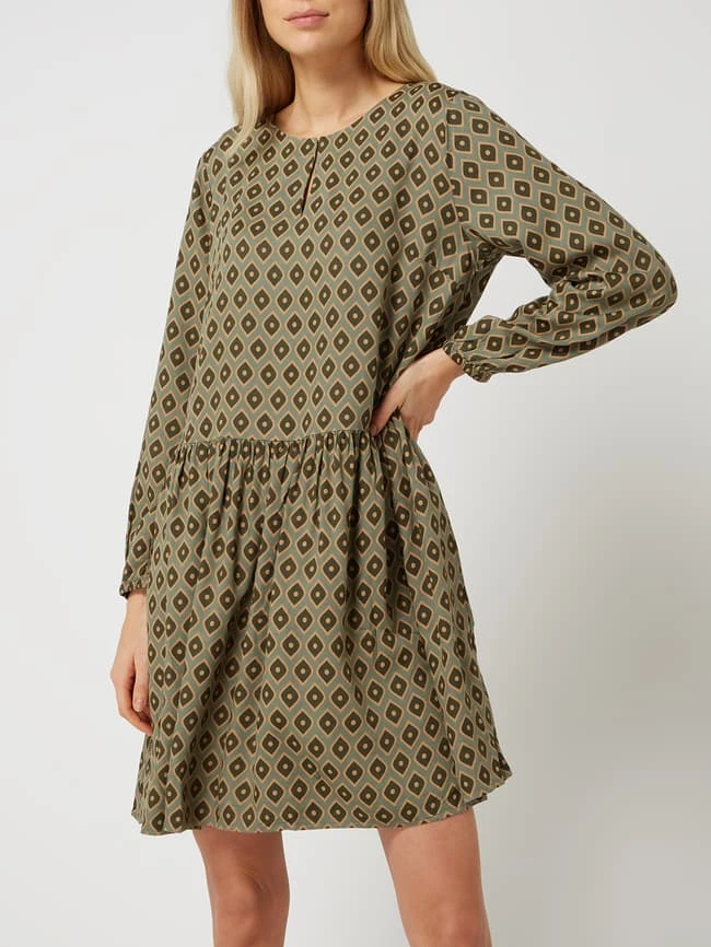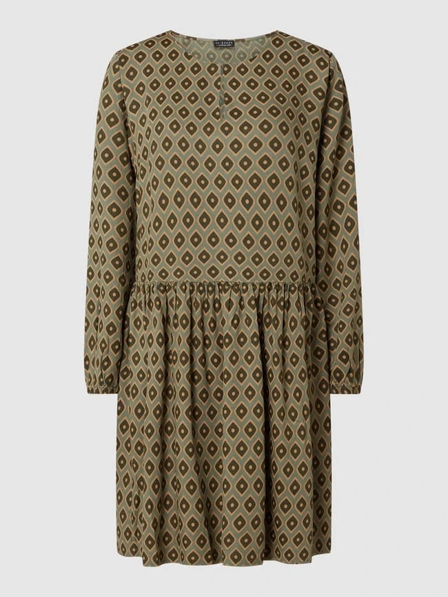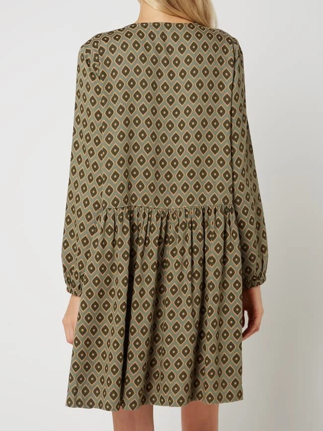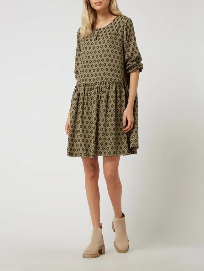 Das Kleid von re.draft ist aus reiner Viskose gefertigt und ausgestellt geschnitten. Es kommt mit Allover-Muster, Schlüsselloch-Ausschnitt und Raffungen.