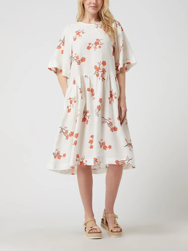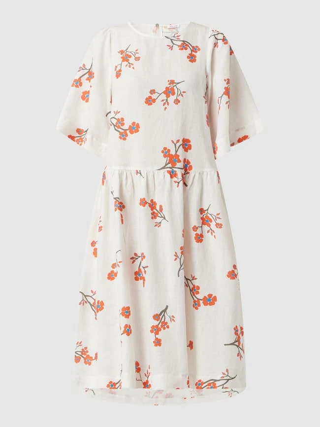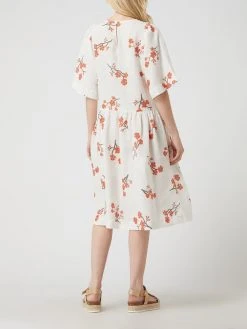 Das Kleid von Seidensticker ist aus reinem Leinen gefertigt und tailliert geschnitten. Es kommt mit floralem Muster, ausgestelltem Rockteil und geknöpftem Schlüsselloch-Ausschnitt auf der Rückseite.