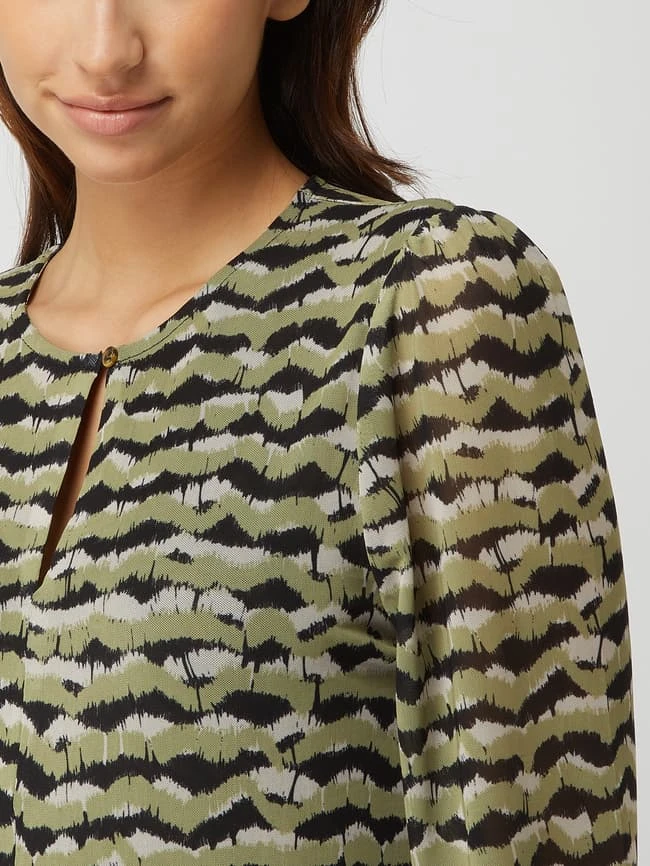 Das Kleid von Soaked in Luxury ist aus Mesh gefertigt. Es kommt in ausgestellter Passform mit Allover-Muster, Rundhalsausschnitt und geknöpftem Schlüsselloch-Ausschnitt.
