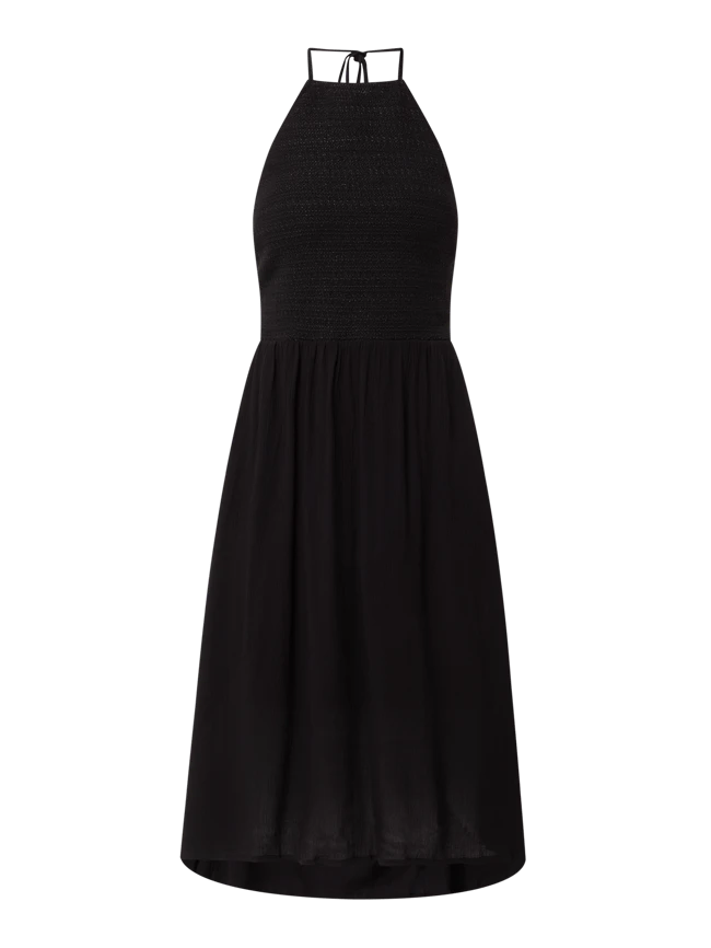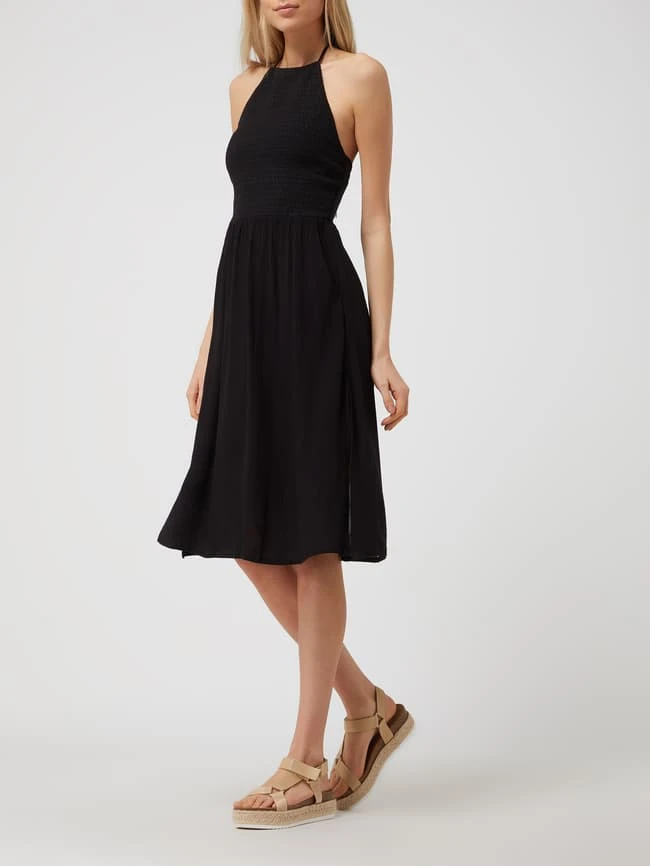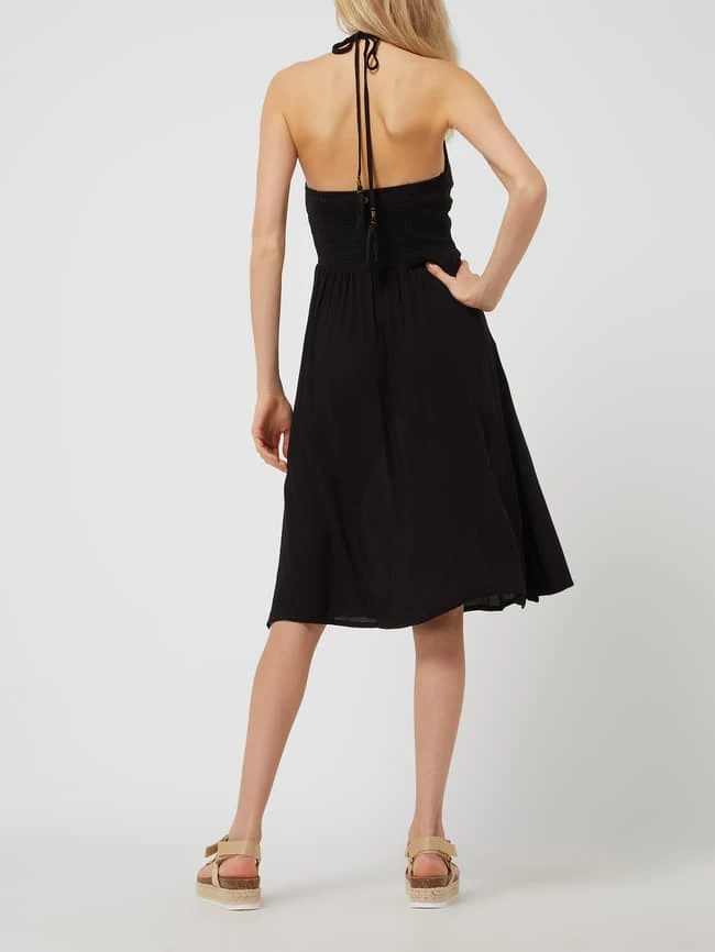 Das Kleid von Superdry ist aus reiner Viskose gefertigt und ausgestellt geschnitten. Es zeigt sich mit Neckholder, schmalen Trägern und ausgestelltem Rockteil.
