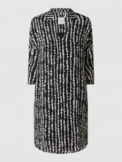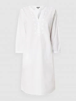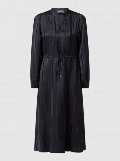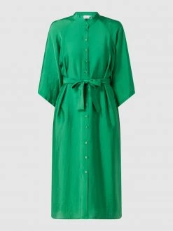 Das Kleid von Tonno & Panna ist aus reinem Leinen gefertigt und ausgestellt geschnitten. Es kommt mit Umlegekragen, angeschnittenen Ärmeln und Biesen.