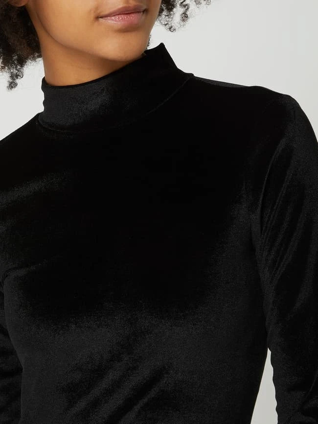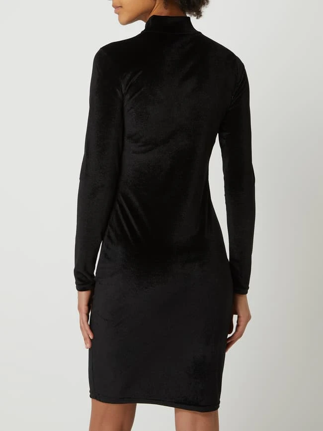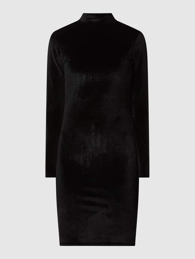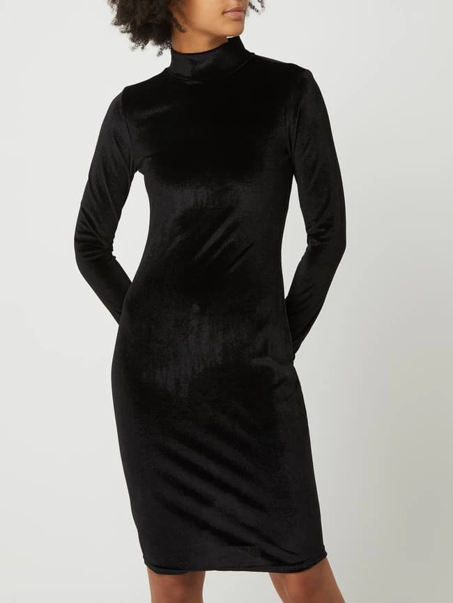 Das Samtkleid von Urban Classics ist aus Samt gefertigt und eng anliegend geschnitten. Es zeigt sich mit Stehkragen und langen Ärmeln.
