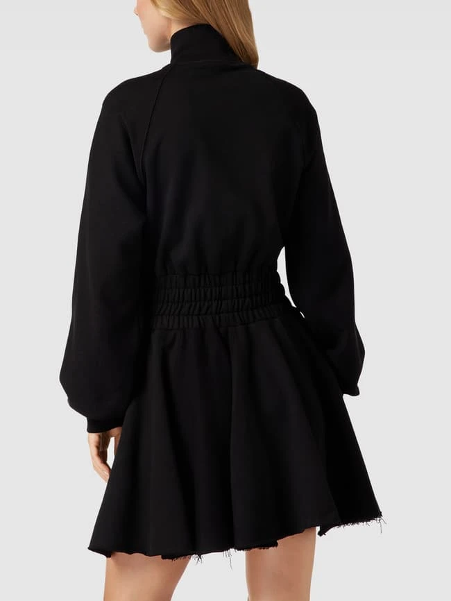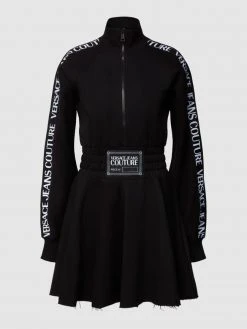 Das Kleid von Versace Jeans Couture ist aus einem Baumwoll-Mix mit Stretch-Anteil gefertigt und tailliert geschnitten. Es zeigt sich mit Label-Patch sowie geripptem Stehkragen und kurzem Reißverschluss.